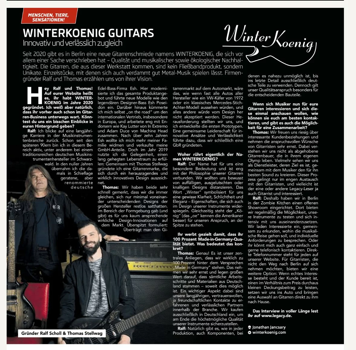 November 2025: Interview des WinterKoenig Teams mit dem Deutschen Legacy Hard Rock Magazin Ausgabe Nr. 159